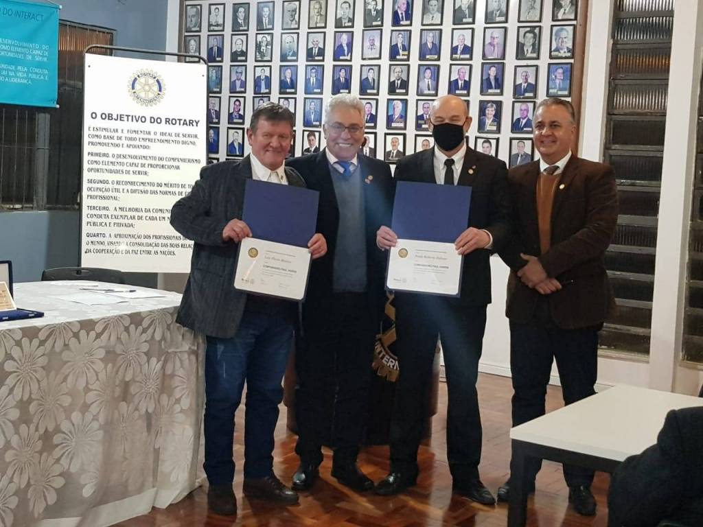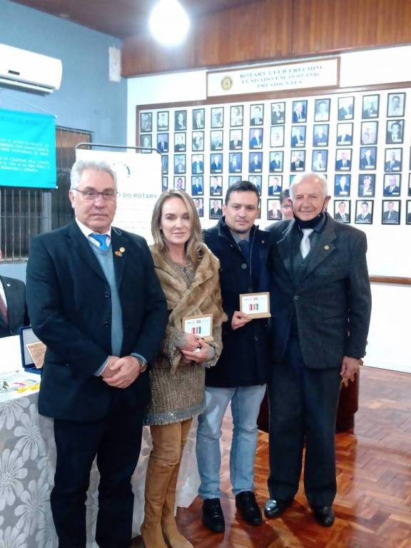 Antes da transmissão dos cargos o presidente Walmir Badalotti realizou a entrega dos Distintivos Rotários aos três novos associados empossados em sua gestão: SIMONE MARÍNDIA BIOLO, RODRIGO DOS SANTOS e OTÁVIO LUIS VIER. Presidente Walmir também realizou a entrega de dois títulos Paul Harris para os companheiros PAULO ROBERTO HÜBNER e LUIZ FLÁVIO MÂNICA.