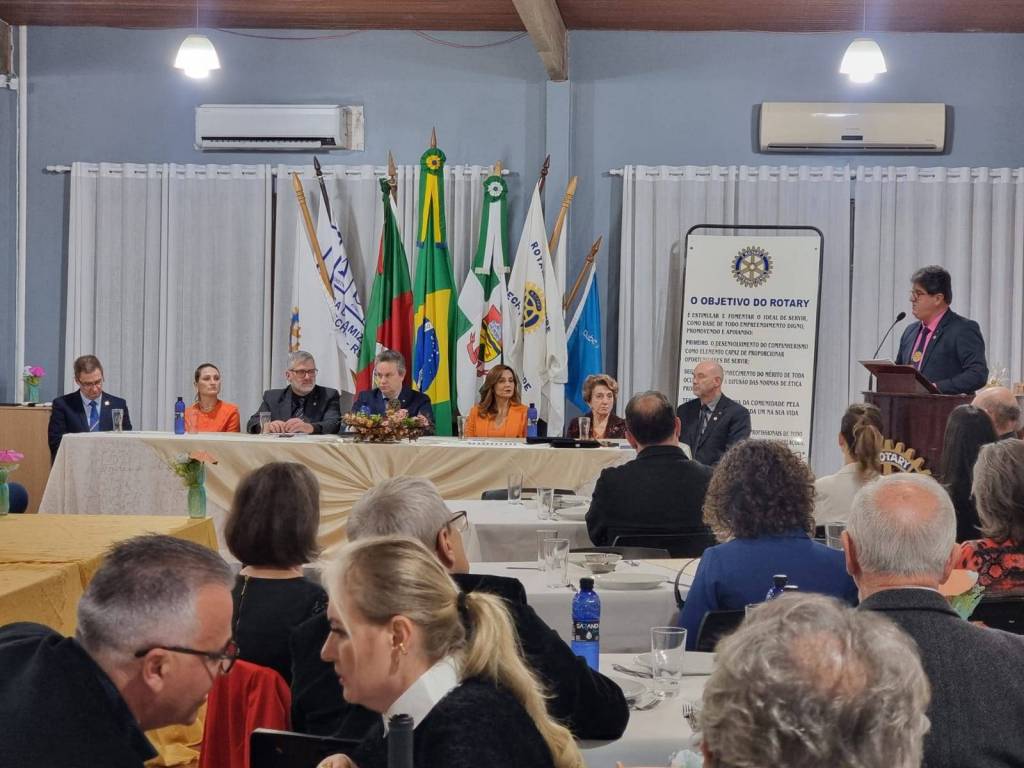 Após as homenagens, foi realizada a transmissão de cargo de presidente, em que o presidente Luciano Faggion passou o malhete para o presidente eleito Cleder da Silva Schneider, que assumiu o comando do clube para o ano rotário 2023/2024.