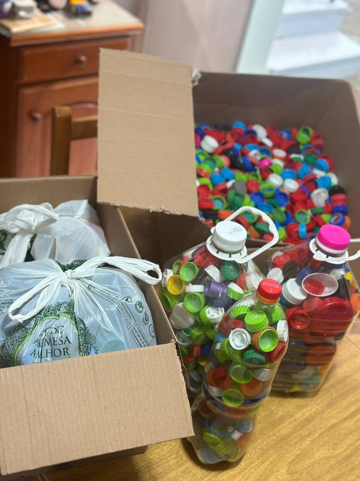 A última entrega foi realizada no dia 01 de agosto de 2023, quando foram doadas uma grande quantidade de tampinhas que serão encaminhadas para reciclagem.