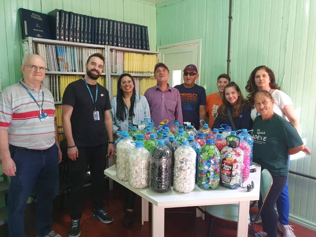 As tampinhas fazem parte de uma campanha de arrecadação realizada pela Escola Básica e pelo Curso de Educação Física da URI, que mobilizaram alunos, professores e funcionários para doar as tampinhas já separadas e classificadas, as mesmas foram entregues na sede da ADEVE para serem encaminhadas ao Rotary.