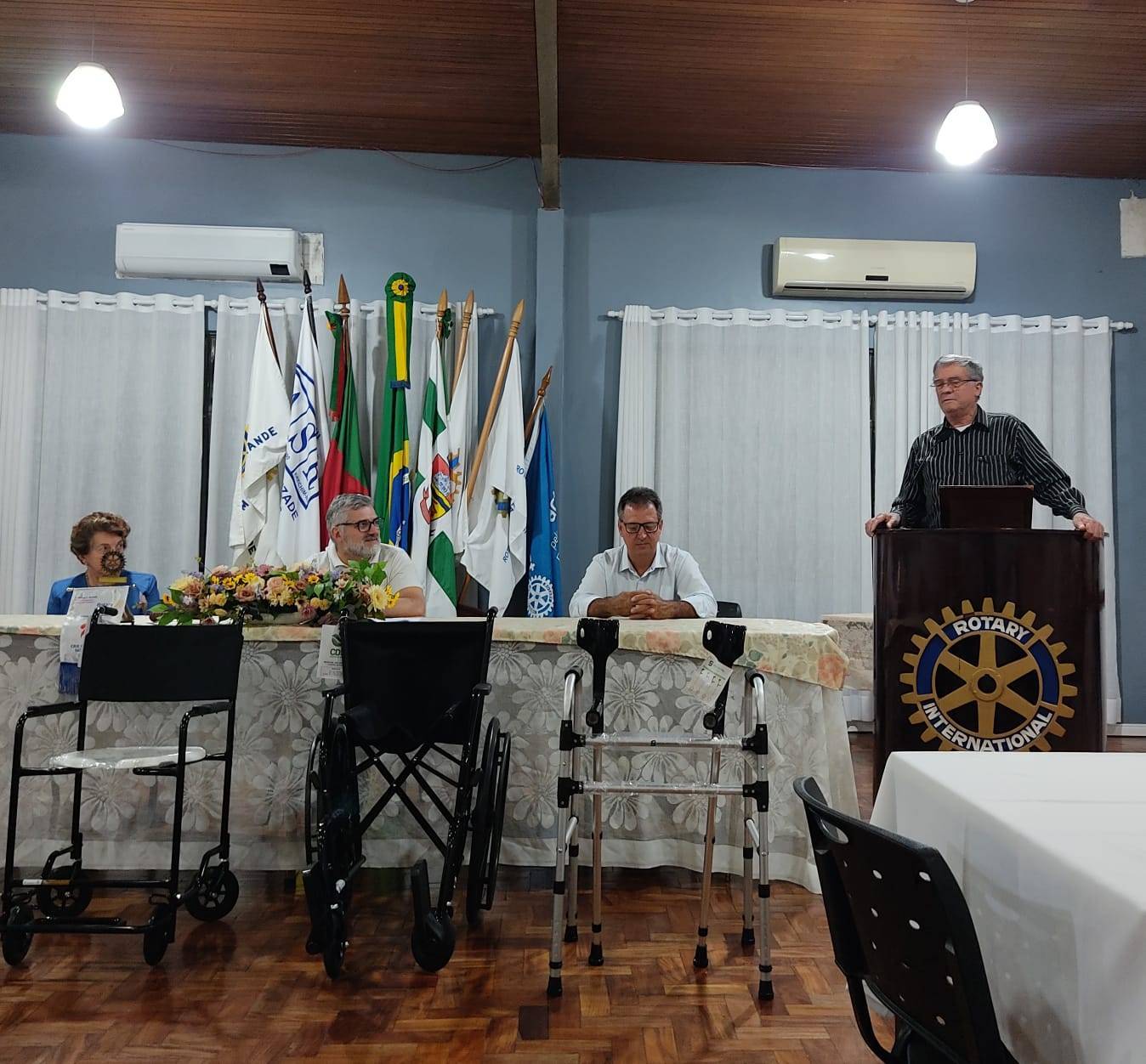 Foram doadas seis cadeiras de rodas, seis cadeiras de banho, seis muletas e seis andadores, ultrapassando o valor de R$ 7 mil reais. Os equipamentos serão destinados ao Banco Ortopédico, um projeto do Rotary que empresta gratuitamente esses materiais para pessoas que necessitam de auxílio na locomoção.