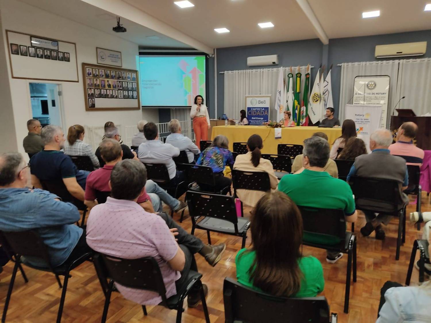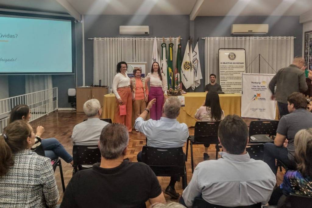 A presidente do Rotary Três Vendas, Marlene Argenta, expressou sua gratidão às palestrantes pela excelente apresentação e aos participantes pela generosidade. Além disso, anunciou futuros encontros com as equipes das palestrantes para explorar outros temas de relevância para o empresariado local.