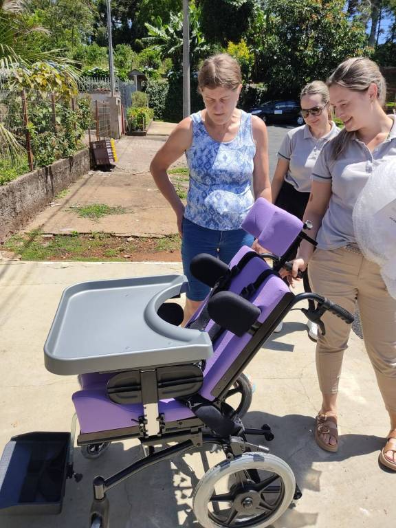 A entrega da cadeira de rodas foi realizada no dia 11 de dezembro de 2024, na residência da Sra. Lúcia Sadoski Kuderna, mãe de Luana.