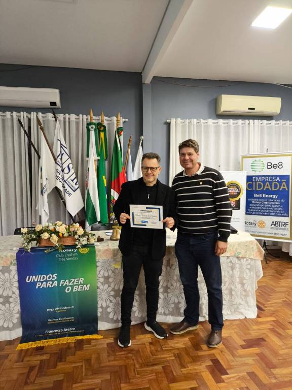 Ao final do encontro, o presidente do Rotary Club de Erechim Três Vendas, Jorge Alves Morsch, expressou seu reconhecimento pela excelente palestra ministrada por Diogo Pereira dos Santos, destacando a relevância do conteúdo apresentado e o impacto positivo da reflexão proposta. Como forma de agradecimento, entregou ao palestrante um certificado, simbolizando a gratidão do clube pela contribuição ao fortalecimento das ações e valores rotarianos.