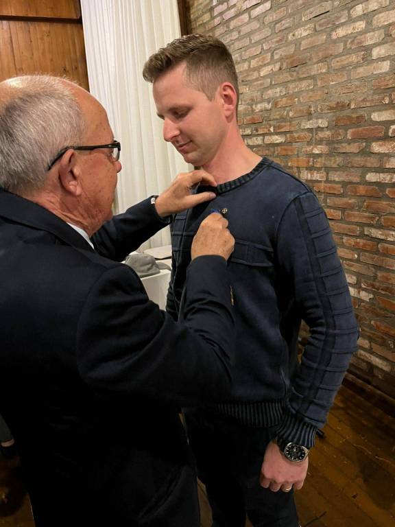 Como gesto de acolhimento, os padrinhos e suas respectivas esposas entregaram mimos de boas-vindas aos novos companheiros e suas famílias, reforçando o espírito de integração e amizade que caracteriza o Rotary.