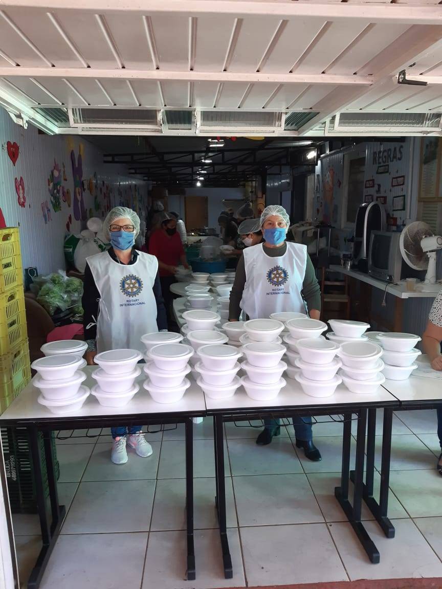 Inspiradas na Missão do Rotary, que é servir ao próximo, as esposas e amigas dos associados o Rotary Club de Erechim Três Vendas realizaram uma ação social, no dia 07 de agosto de 2020, com a doação de 250 refeições, cada família recebeu três viandas, duas com massa e molho, uma com galeto, maionese e Salada verde. Na oportunidade participaram da entrega Maria Glaci Klaus dos Santos e Teresinha Henrique Canteli.